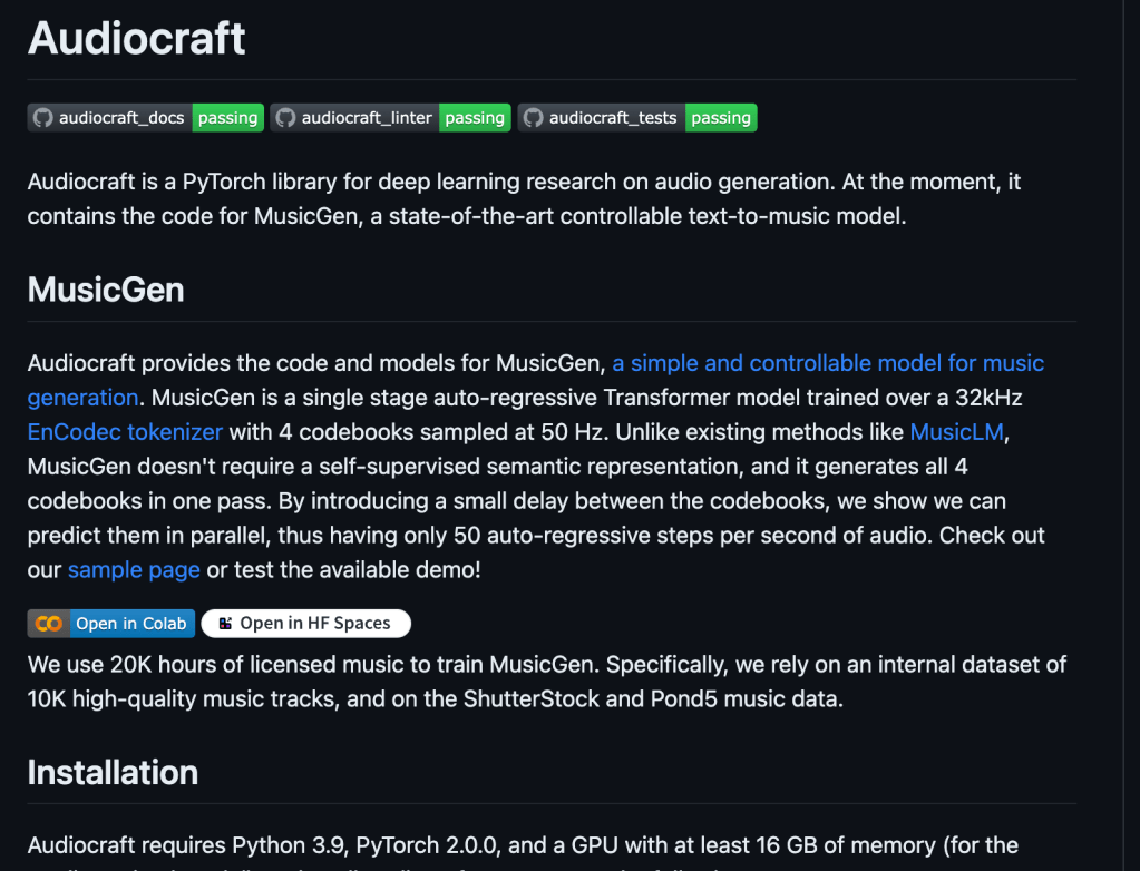 MusicGen is an open-source text and music model created by Facebook, with the code publicly available on GitHub for enthusiasts to experiment with. In addition to producing high-quality audio, MusicGen boasts a remarkable understanding of genres, and soon users will have the ability to train their own models, further amplifying the creative possibilities.